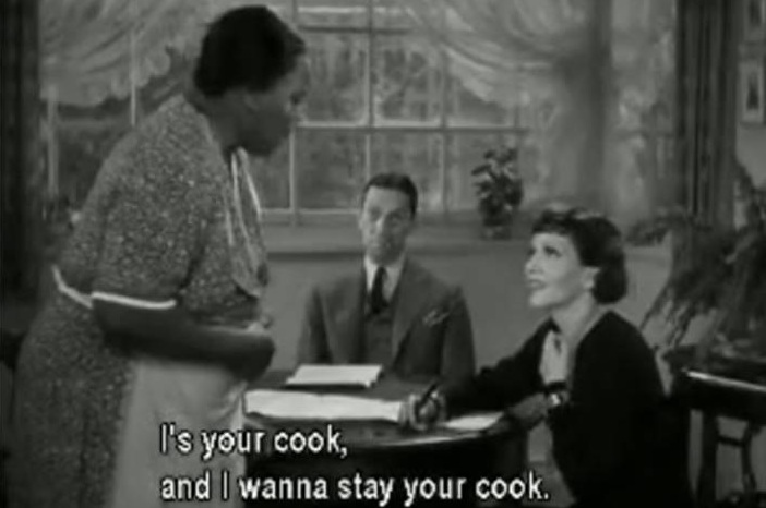 On the other hand, Beavers' performance progressive in that she was given almost as much screen time as Colbert. Also, for the first time, the problems of an African American working mother were shown to be as equally important as a white working mother. The problem of racial equality was directly addressed, though not resolved, within the space of the movie. The concerns of working women were central to the plot, and the contrast between the two situations, and how the women support each other to negotiate their problems, projects a very early positive, harmonious model of inter-racial cooperation.